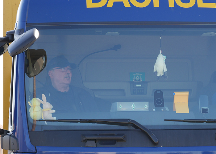 Mit LKW-Transport, Riesenschäkel und Palettenthron