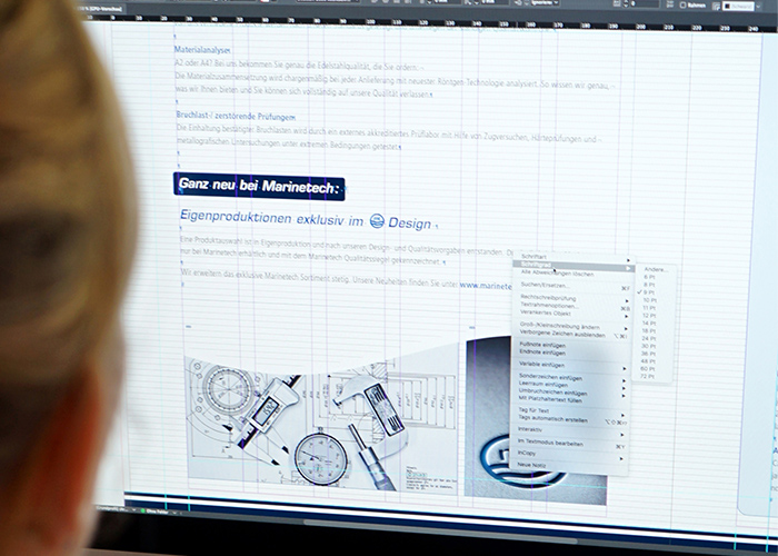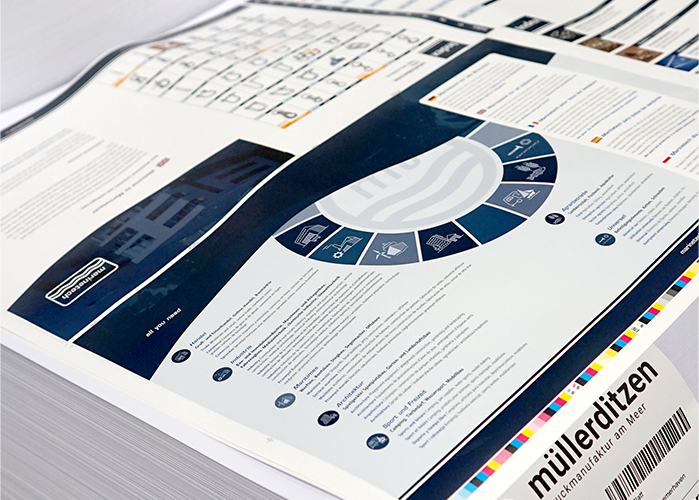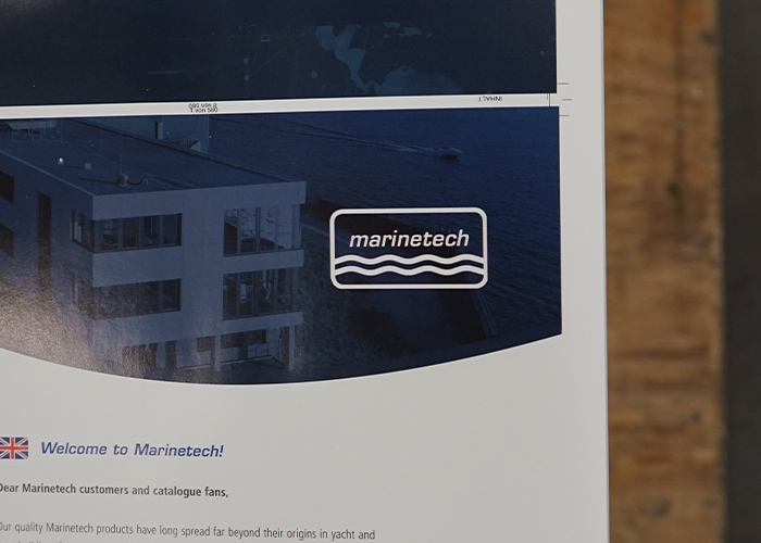 Sa conception soignée et sa qualité de fabrication ont nécessité le concours de nombreux acteurs. Toute l'équipe Marinetech et de nombreux experts externes étaient à l'œuvre : photographes, concepteurs et rédacteurs, dessinateurs, traducteurs, lithographes, imprimeurs et autres. L'avant-dernière étape avant la publication – l'impression – était particulièrement intéressante, et nous l'avons suivie personnellement. Dans l'imprimerie, nous avons pu constater en direct combien le processus d'impression offset est complexe. Et c'est avec fierté que nous avons pu réceptionner et expertiser les premières pages tout juste imprimées. Le travail s'est avéré payant. Le catalogue n'a plus qu'à être relié avant d'être expédié dans le monde entier.