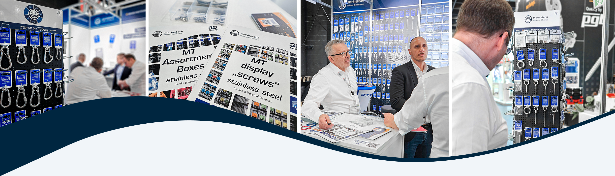 „Das Gremium hat entschieden, dass Sie den schönsten Stand auf der Messe haben“, war wohl die außergewöhnlichste Anrede, die unsere Kollegen auf der Köln-Messe erfuhren. Sauber an Blisterkarten aufgehängt und gut sortiert schmückten unsere Edelstahlprodukte den Marinetech-Messestand, der immerhin 12 Quadratmeter umfasste. „Klein aber oho“ hätte also in diesem Fall auch gepasst. Abgerundet wurde das Bild durch akkurat gestapelte Schütten für Schrauben, Scheiben und Muttern und auch unser kompaktes Drehdisplay fand Platz. Vier Tage lang empfingen wir in unserem „kleinen Shop“ Partner und Interessenten der Branche und präsentierten das umfangreiche MT-Portfolio für den Point of Sale: Sortimentskästen Schraubenständer Blisterwand, um nur ein paar Stichworte zu nennen.